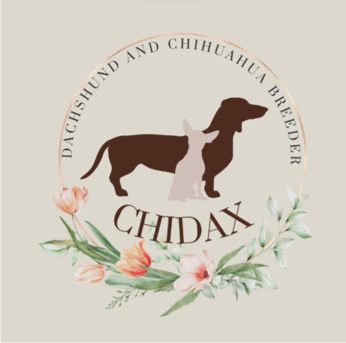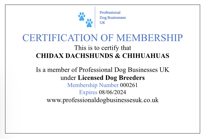 My first ever pure bred Dachshund that I owned was my beloved Mabel (we had owned a Wire Haired Dachshund x JRT called Timothy previously for 17 years! ) this beautiful girl who I still miss, I bought when we lived in Spain. She was what they call Continental size slightly larger than a Uk Mini but not a UK Standard either. Either way she was an absolute beauty and I was totally besotted with her. We found an equally as gorgeous Spanish husband (Percy) for her and they went onto have some beautiful Puppies together. Whilst living in Spain we rescued a lovely little Chihuahua and I quickly realised that this was going to be my second choice of dog to keep/breed so I bought 'Violet' and she became firm friends with Mabel. The two breeds live very nicely together actually.